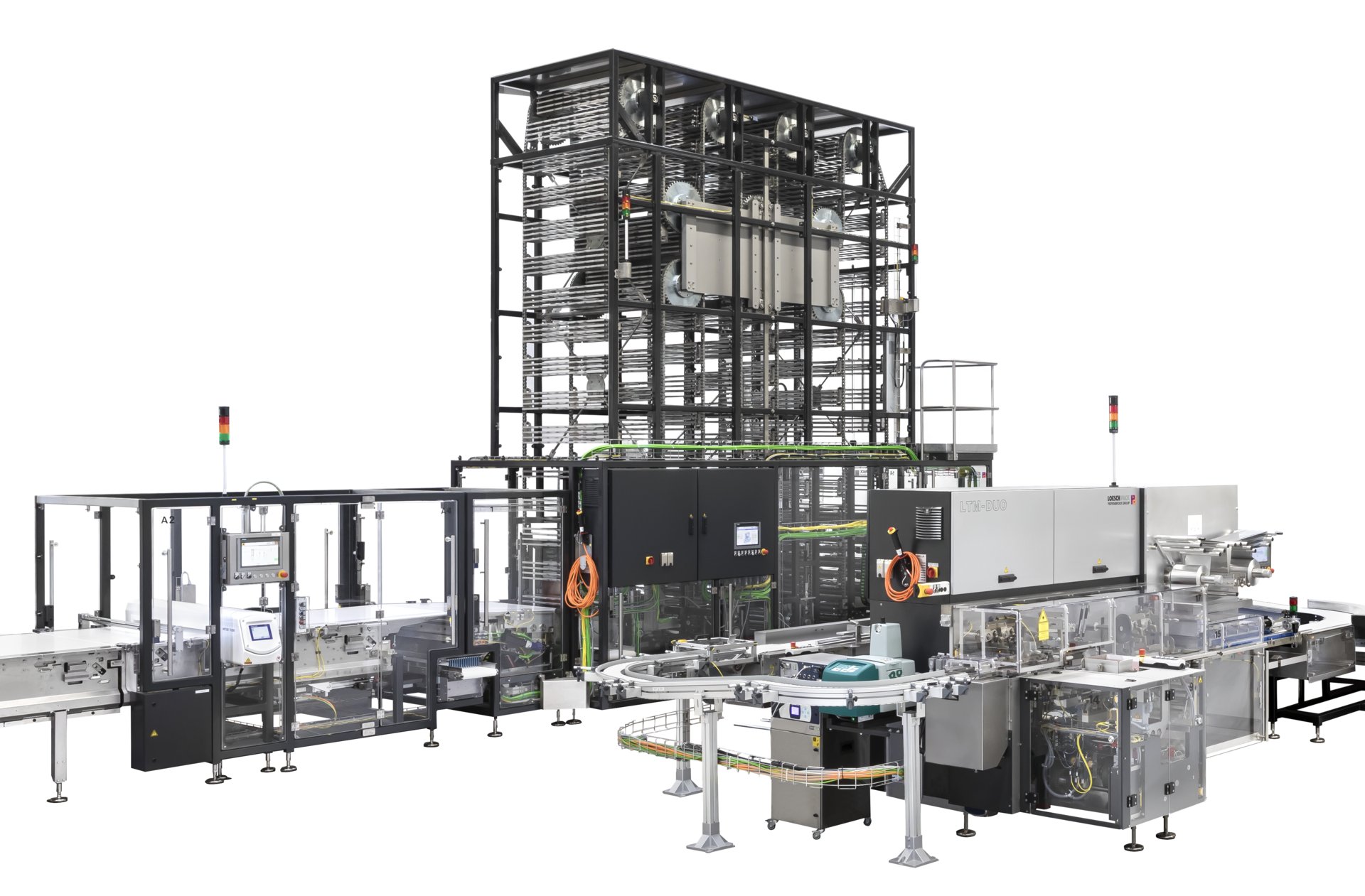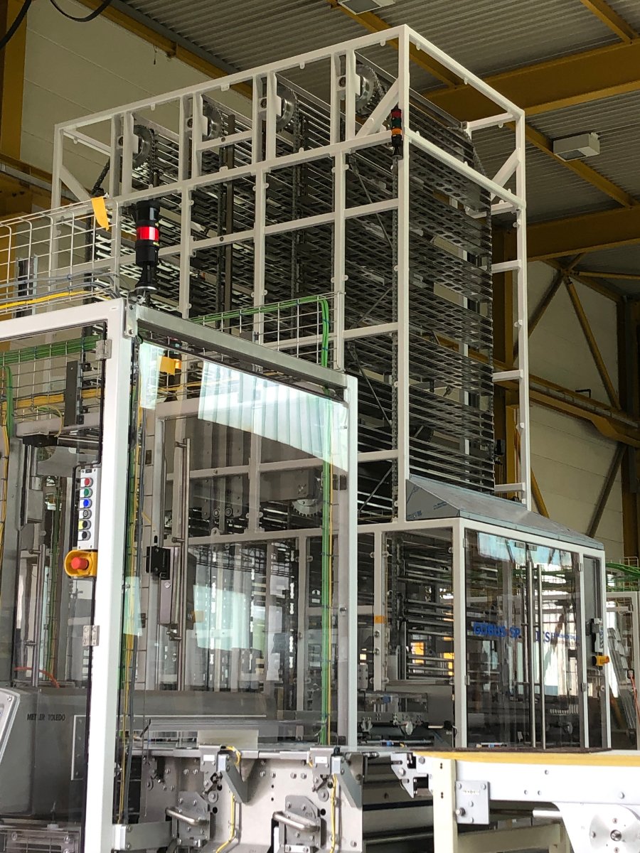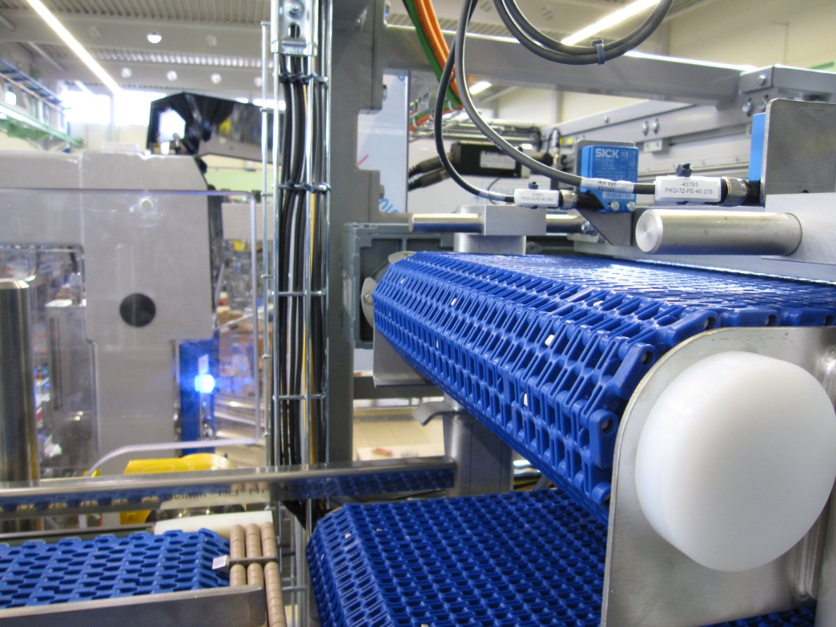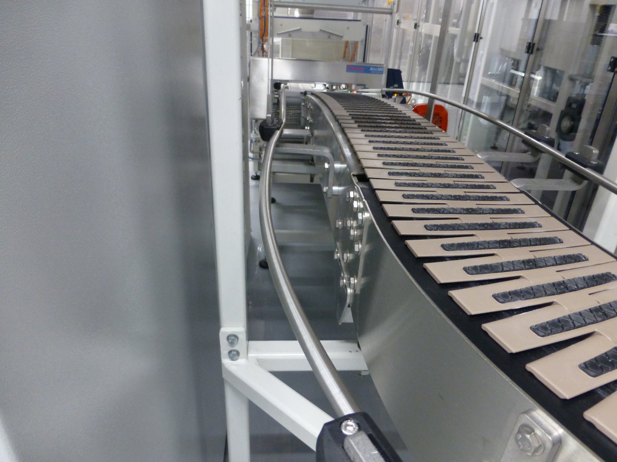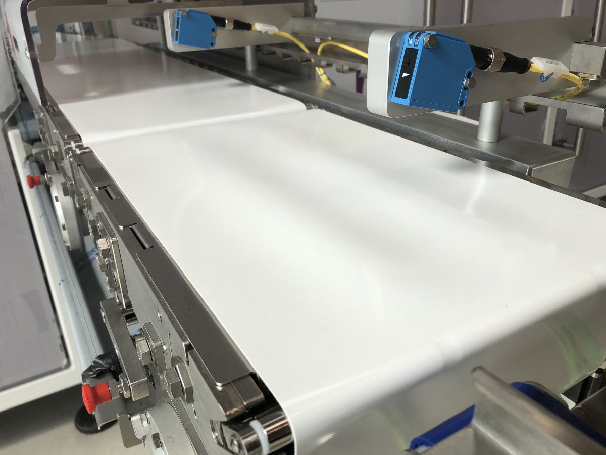 mit Reihenregulierung und Metalldetektion und nachfolgender Packmaschine