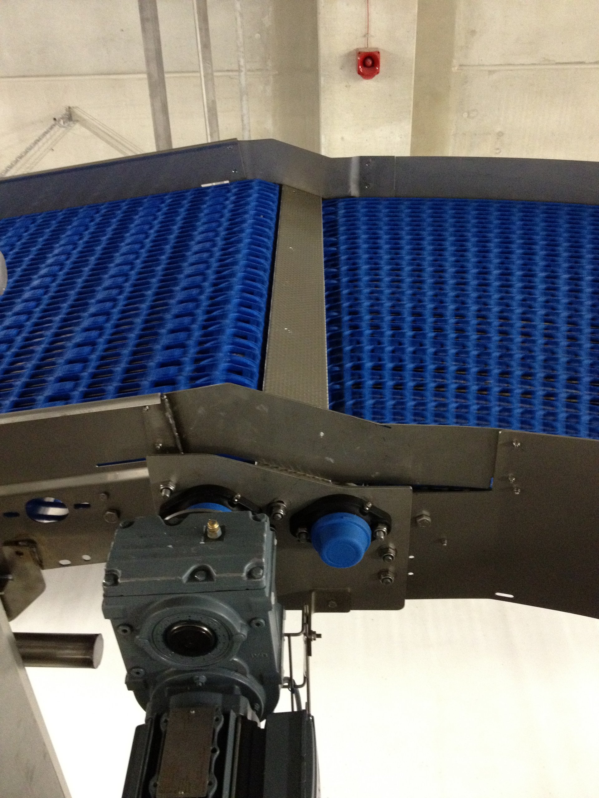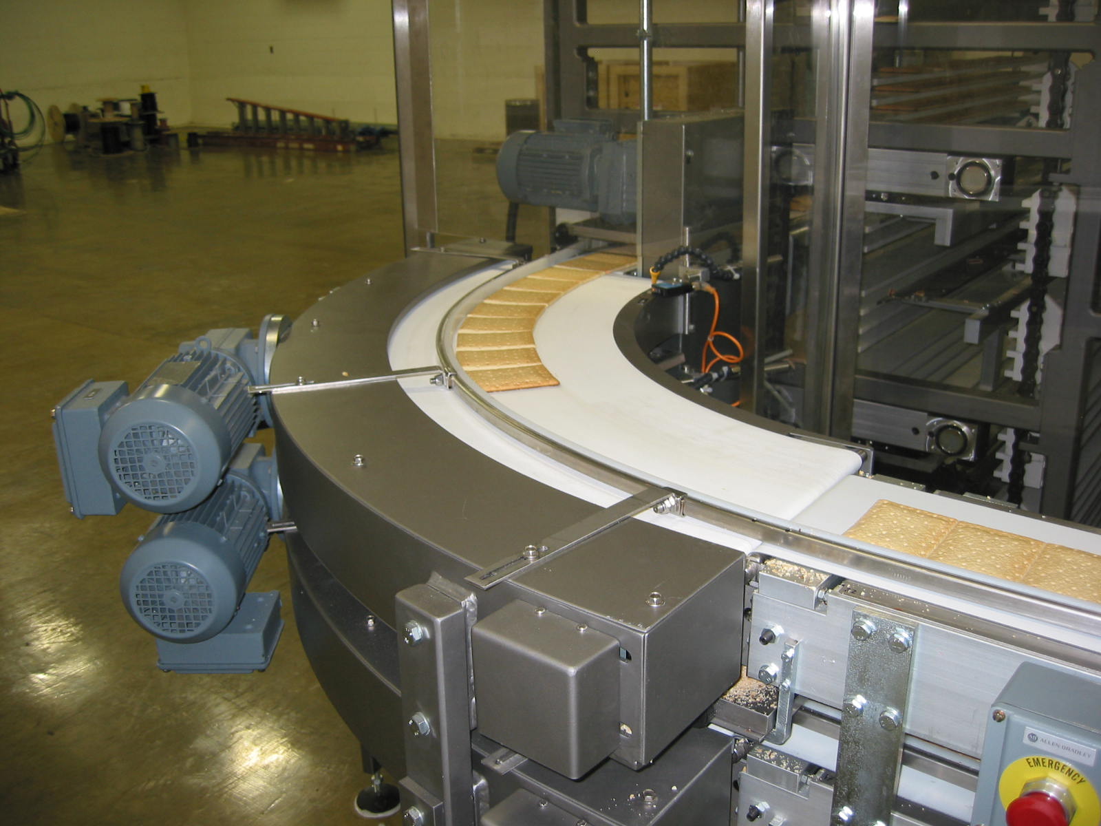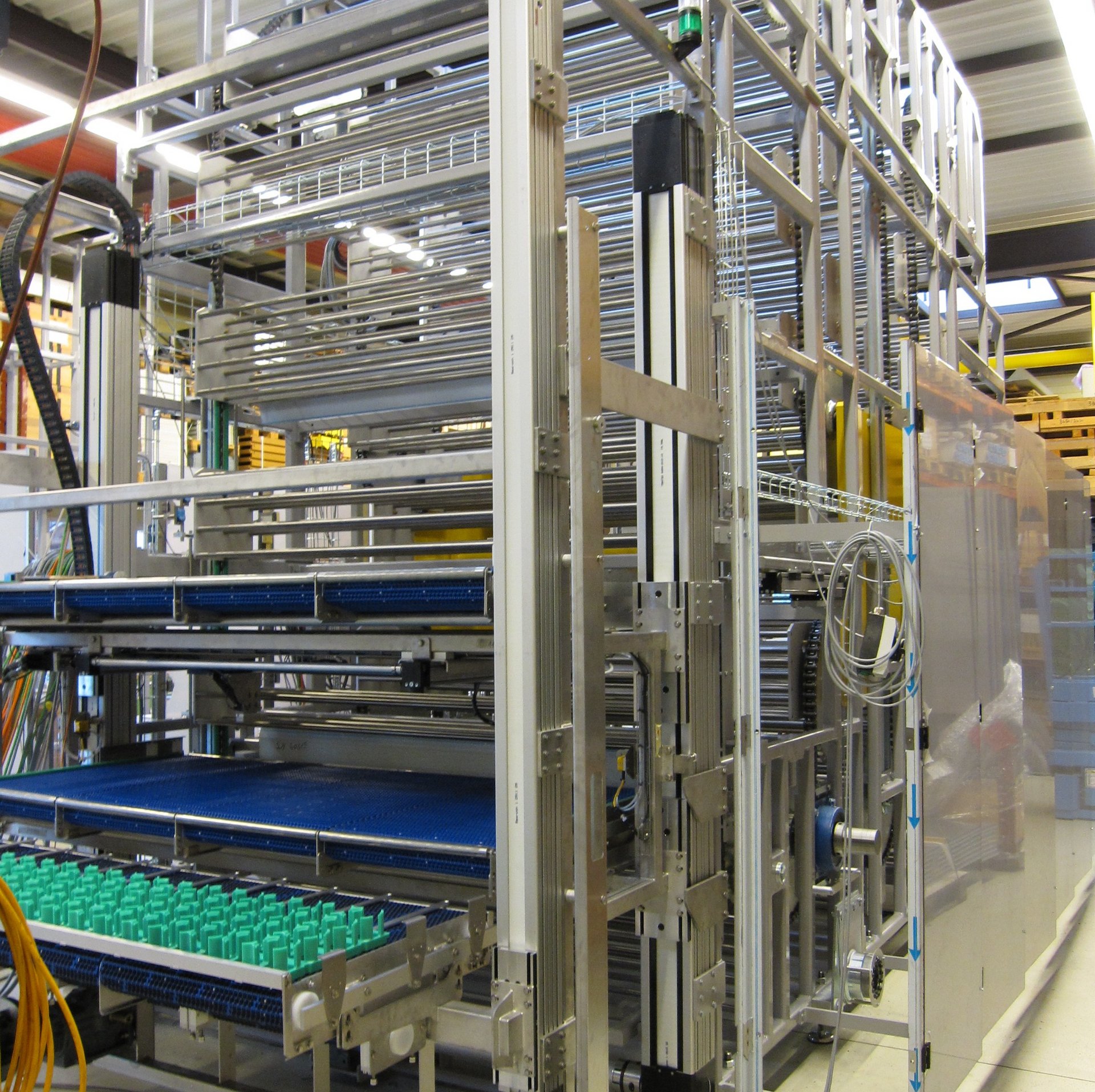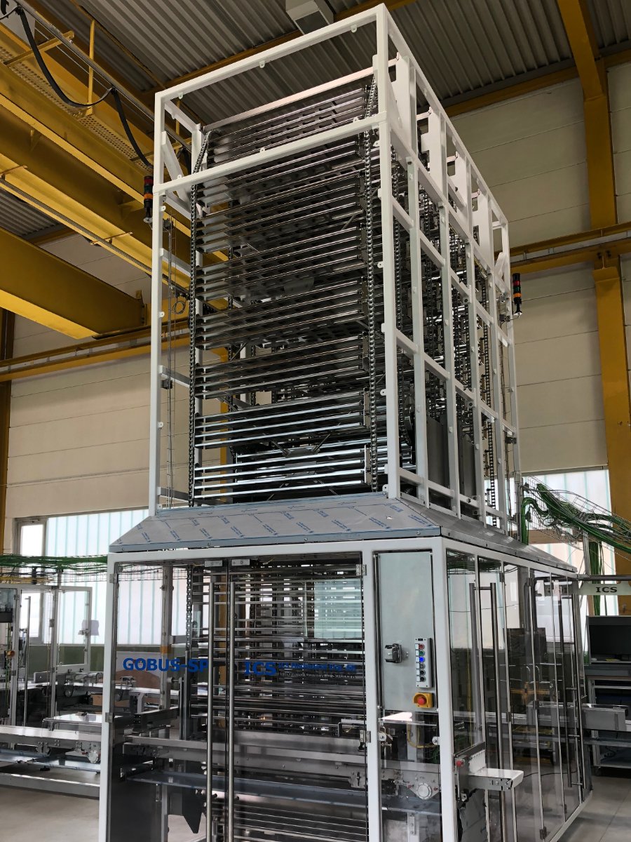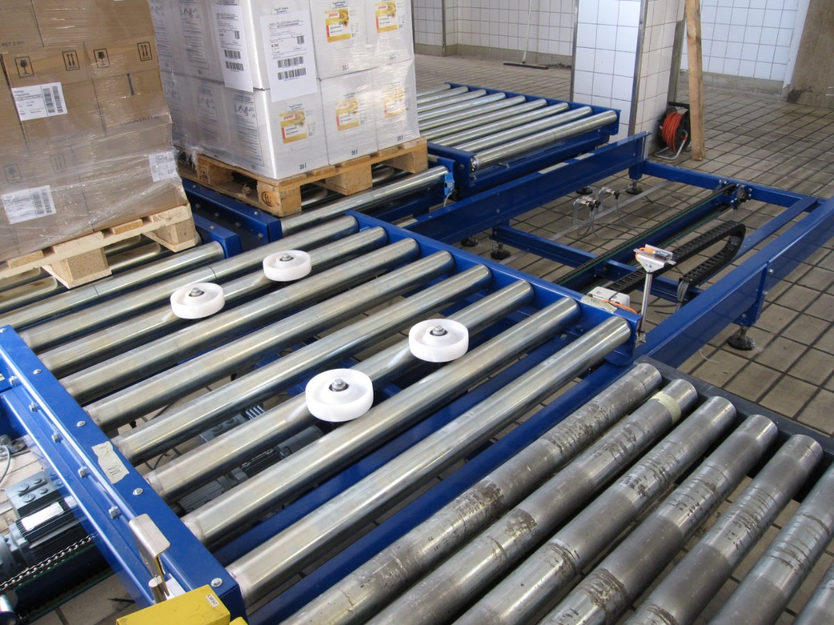 mit querlaufendem Zuführband und Infeed-Schieber